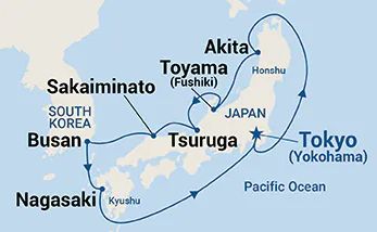 This unforgettable 10-day voyage with Princess Cruises begins in Yokohama near Tokyo and explores the beautiful coastline of Japan and South Korea. After a relaxing day at sea, the journey visits fascinating ports including Akita, Toyama (Fushiki), Tsuruga, and Sakaiminato, each offering unique cultural experiences and scenic landscapes. The cruise also stops in Busan, South Korea, before returning to Japan to visit historic Nagasaki. With a mix of relaxing sea days and culturally rich destinations, this itinerary provides travelers the perfect opportunity to experience traditional Japanese culture, coastal scenery, and vibrant port cities before concluding back in Yokohama.