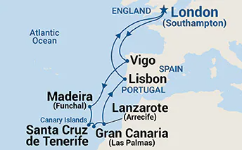 This captivating Princess Cruise departs from Southampton and journeys along the scenic coasts of Spain and Portugal before exploring the sun-soaked Canary Islands. Guests will enjoy charming ports including Vigo, Madeira, Santa Cruz de Tenerife, Gran Canaria, and Lanzarote, each offering a mix of history, culture, and stunning natural landscapes. The itinerary also includes relaxing days at sea, allowing passengers to savor the luxurious onboard amenities and panoramic ocean views. Concluding with a return to Southampton via Lisbon, this voyage perfectly combines European exploration with leisurely cruising, creating an unforgettable Atlantic adventure.