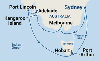 Embark on a 12-night roundtrip cruise from Sydney aboard Princess Cruises, exploring the best of Australia's southern coastline. Visit Melbourne’s cultural landmarks, the stunning wildlife of Kangaroo Island, and the charming cities of Adelaide and Port Lincoln. Experience the historical significance of Port Arthur, and enjoy an unforgettable overnight stay in Hobart, where you can explore the vibrant city by night and day. This journey offers a perfect blend of natural beauty, history, and local culture, all set against the backdrop of the Australian coast.