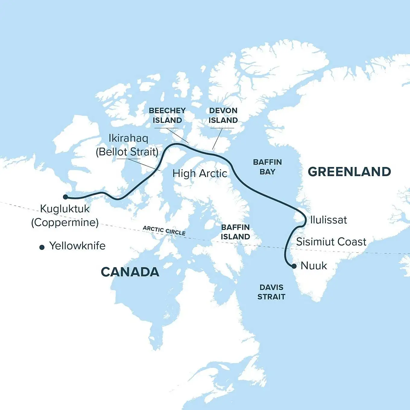 Iqaluktuuttiaq (Cambridge Bay), NU, is an alternate disembarkation point, and may be used based on sea, ice, and weather conditions.