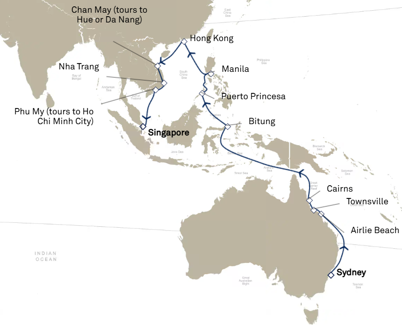 You'll find plenty to delight on this 26-nightboyage. From the natural wonders within reach from Airlie Beach to Vietnam's fragrant street food, disover extra special moments in every port