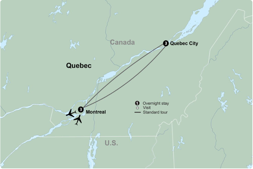 Enchanting winter experiences and magical Christmas markets await in Quebec City and Montreal, each with its own unique charm and character. Embark on a city tour of Quebec City, bundling up to wander through Old Quebec and among the wooden stalls of its German Christmas markets. Discover the history and landmarks of Montreal, from atop Mount Royal to the Underground City. Learn about the art and tradition behind making the iconic French holiday cake, the Bûche de Noël. Visit a traditional sugar shack in the Quebec countryside and see the impressive Montmorency Falls. Set out on a festive journey to two French Canadian cities in the heart of the holiday season.