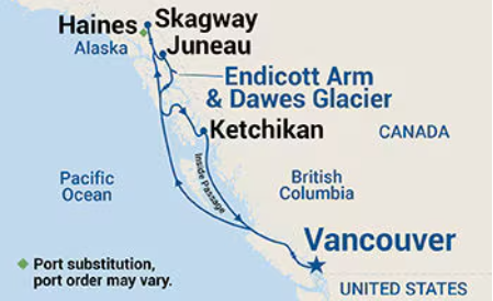 Sail from Vancouver into the heart of Alaska’s dramatic wilderness, where misty fjords, towering glaciers, and historic frontier towns await. Explore the colorful streets of Ketchikan, experience the vibrant culture and natural beauty of Juneau, and step back in time in Skagway. Cruise through the icy majesty of Endicott Arm to witness the awe-inspiring Dawes Glacier—a journey filled with unforgettable scenery and untamed adventure at every turn.