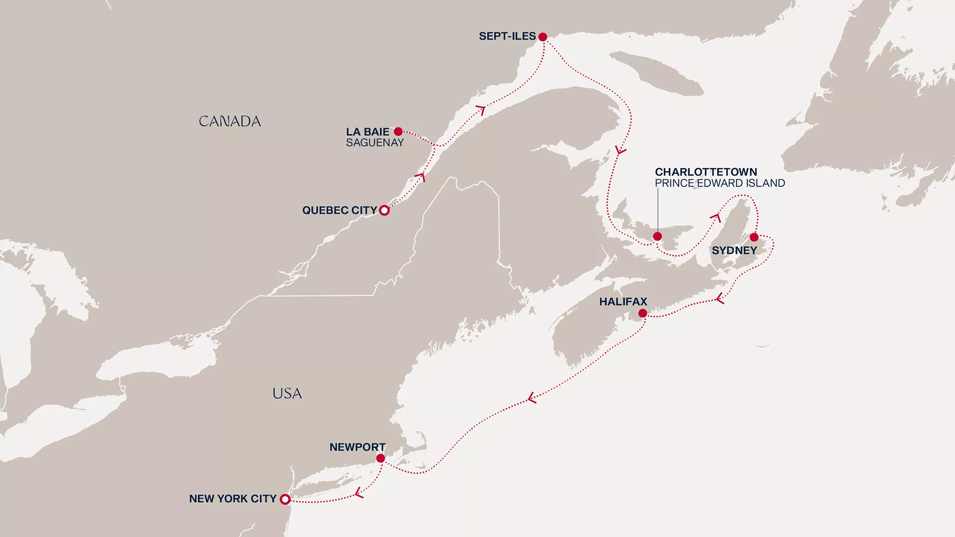 Begin in Quebec City, where centuries-old architecture sets the tone for our voyage through North America’s coastal treasures. Sail to the scenic Saguenay Fjord at La Baie, then on to Charlottetown’s enchanting and colourful coastline. On Cape Breton Island, Sydney invites us to its Celtic spirit, then Halifax dazzles with its lively waterfronts. Cross into the U.S. for a memorable first-time arrival in the elegant town of Newport before reaching the electric energy and iconic landmarks of New York City.